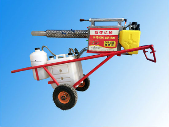 2、藥效持久:該機(jī)迷霧顆粒極細(xì)(能達(dá)到0.5微米),使農(nóng)藥附著力增強(qiáng)、著藥面均勻,提高藥效,殺蟲(chóng)殺菌提高;