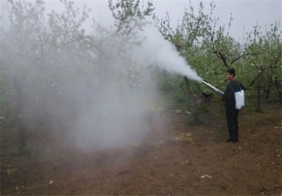 5、提溫防凍:在春季果樹(shù)發(fā)芽時(shí),該機(jī)加上煙霧劑后,噴煙可提溫,防止凍花凍果,減少損失。