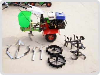 本機可以配的農(nóng)具有:播種施肥耬、除草輪、耘鋤、旋耕機等。